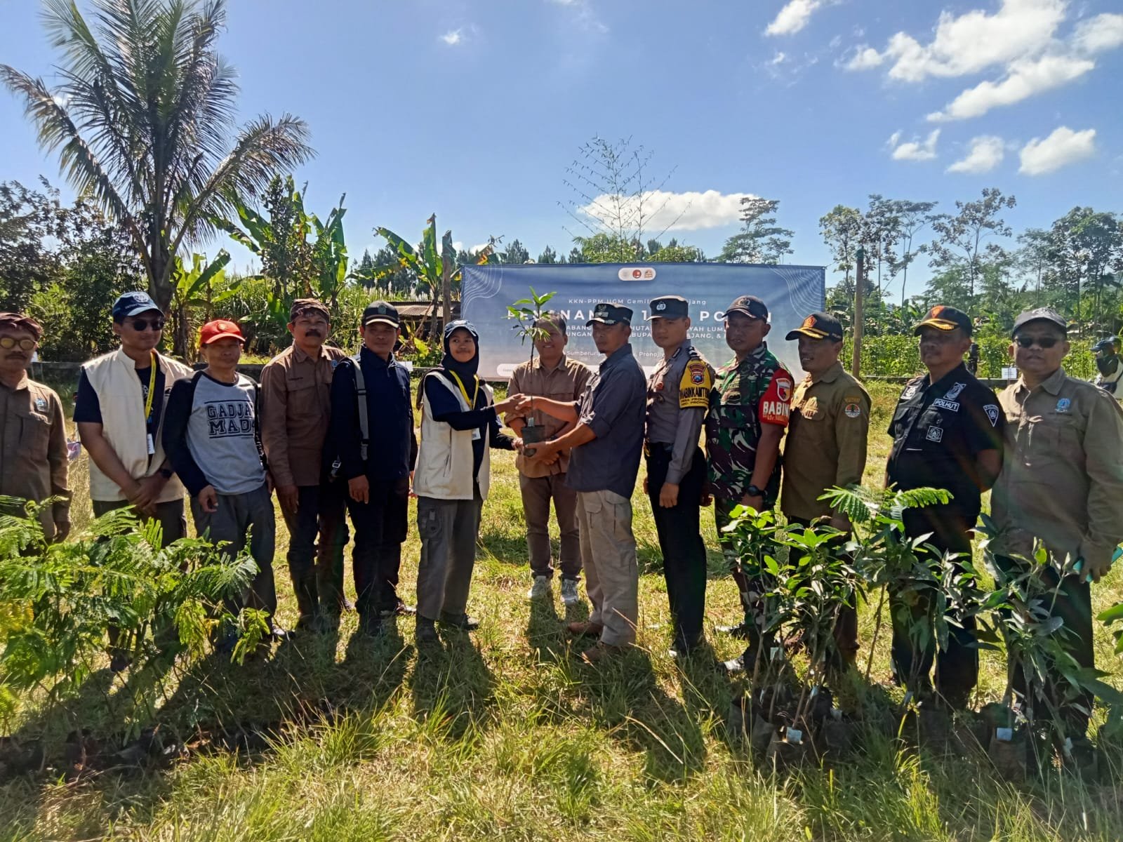 Lumajang, Babinsa Sumbersari dari Koramil 0821/14 Pronojiwo, Sertu Januar Adi Hidayat, bersama dengan berbagai stakeholder setempat dan puluhan mahasiswa Kuliah Kerja Nyata (KKN) dari Universitas Gadjah Mada (UGM) dan Universitas Jember (UNEJ), melaksanakan kegiatan reboisasi di lapangan Dusun Rekesan RT 014 RW 007 Desa Sumbersari, Kecamatan Pronojiwo Kabupaten Lumajang, Jawa Timur, pada Selasa (16/7/2024).