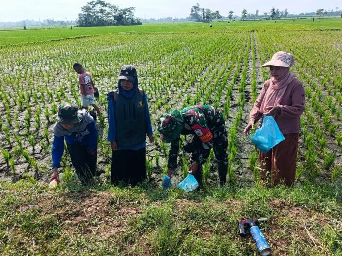 Lumajang – Koramil 0821-11/Yosowilangun melalui Babinsanya, Serda Dafit Mardianto, bersama sekitar 30 warga melaksanakan kegiatan pengendalian hama tikus di lahan pertanian milik Kelompok Tani Dewi Sri, yang berada di Dusun Bulaktal, Desa Yosowilangun Lor, Kecamatan Yosowilangun, Kabupaten Lumajang, Rabu (8/4/2026).