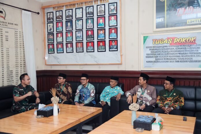 Lumajang – Dalam suasana penuh kehangatan pasca perayaan Hari Raya Idul Fitri 1447 H, Komandan Kodim 0821/Lumajang, Letkol Arh Anton Subhandi, S.A.P., M.I.P., menerima kunjungan silaturahmi dari Kepala Kementerian Agama Kabupaten Lumajang, Achmad Faisol Syaifullah, S.Ag., M.H., bersama jajaran, bertempat di Makodim 0821/Lumajang. Kamis(26/3/2026)