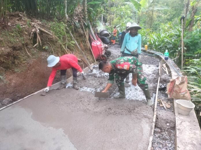 Menariknya, pembangunan jalan rabat beton itu dilaksanakan secara swadaya masyarakat, mencerminkan tingginya kepedulian dan rasa memiliki warga terhadap kemajuan lingkungannya. Dengan penuh semangat, warga bergotong royong mulai dari persiapan material hingga proses pengecoran, didampingi langsung oleh Babinsa sebagai motor penggerak kebersamaan di wilayah binaan.