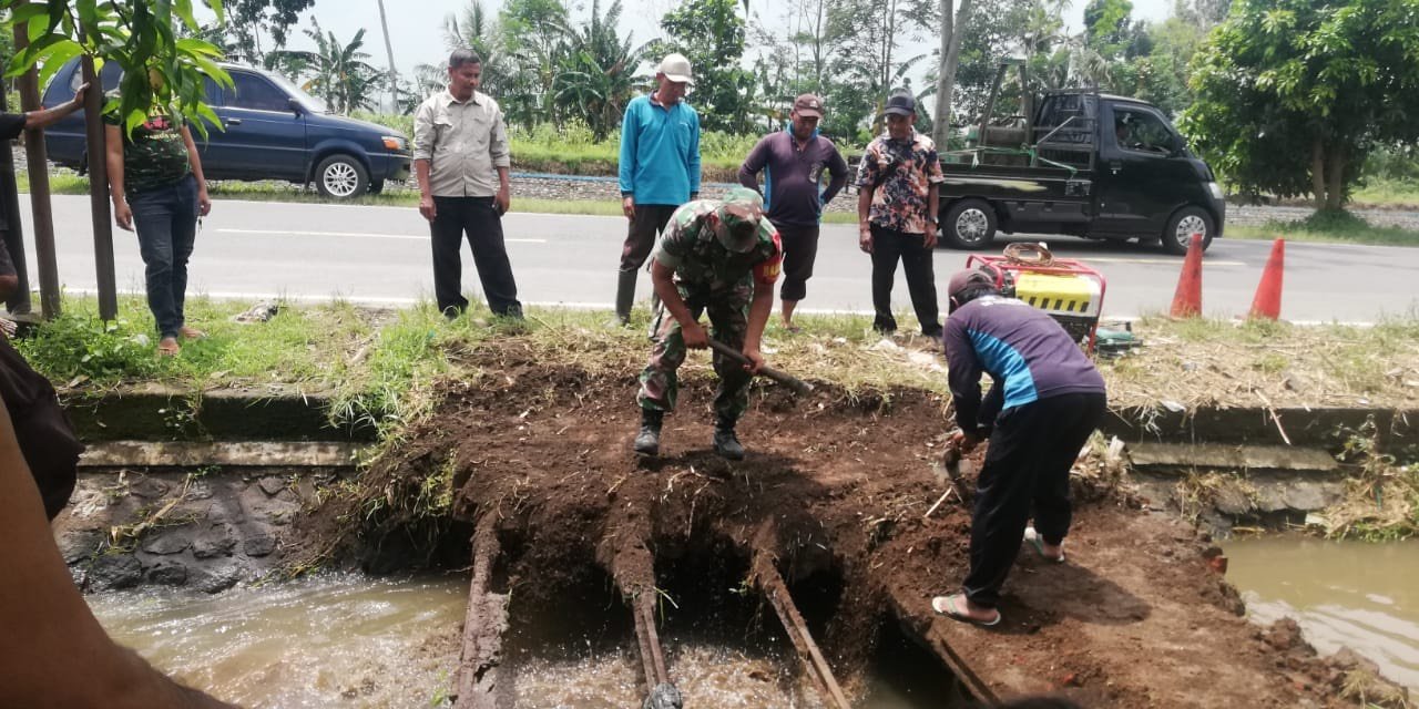 Gotong Royong Babinsa dan Warga Banyuputih Kidul, Atasi Jembatan Penyebab Sumbatan