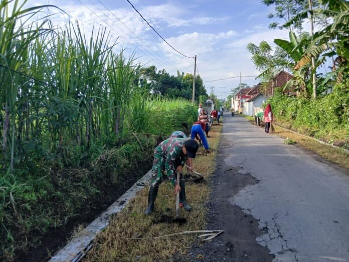 Lumajang – Semangat kebersamaan dan kepedulian terhadap lingkungan, Babinsa Gesang Koramil 0821-10/Tempeh, Serda M. Eko Widodo, bersama warga dalam kegiatan kerja bakti pembersihan parit serta kanan kiri ruas jalan di Dusun Kebonan RT 006 RW 010, Desa Gesang, Kecamatan Tempeh, Kabupaten Lumajang, Jawa Timur, Rabu (14/1/2026).