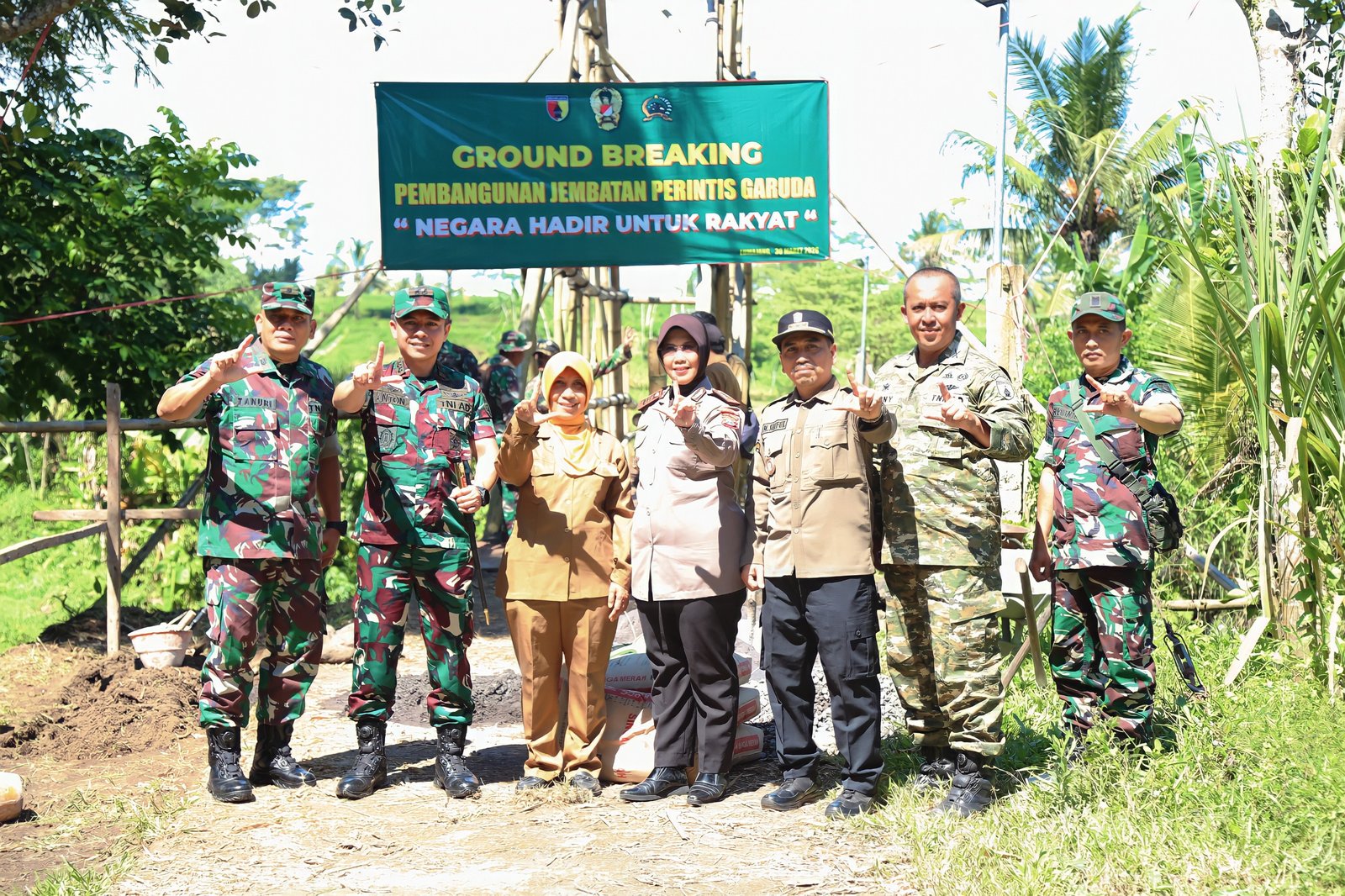 Lumajang – Komandan Kodim 0821/Lumajang, Letkol Arh Anton Subhandi, S.A.P., M.I.P. bersama Kadis PUTR dan Forkopimca Pasrujambe mengikuti kegiatan ground breaking pembangunan Jembatan Perintis Garuda secara terpusat melalui zoom bertema “Negara Hadir Untuk Rakyat”, yang dilaksanakan di Dusun Krajan, Desa Karang Anom, Kecamatan Pasrujambe, Kabupaten Lumajang, Senin (30/3/2026).
