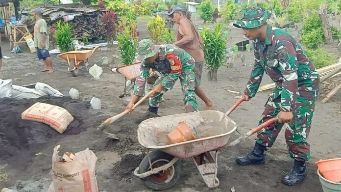 Lumajang — Kepedulian terhadap fasilitas umum dan nilai kebersamaan masyarakat Babinsa Kebonagung Koramil 0821-02/Sukodono, Sertu Hery Wahyudi, bersama tiga orang anggota Koramil serta warga melaksanakan kegiatan kerja bakti pembangunan pagar makam di Jl. Lawu, Dusun Kebonagung Kidul RT 001 RW 001, Desa Kebonagung, Kecamatan Sukodono, Kabupaten Lumajang, Jawa Timur, pada Sabtu (31/1/2026).