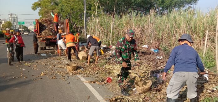Kolaborasi Babinsa, Pemkel, dan DLH Wujudkan Ruas Jalan Lintas Timur Jogotrunan Lebih Bersih