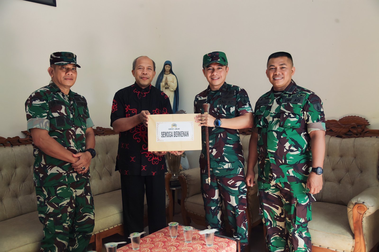 Dalam kunjungan tersebut, Letkol Arh Anton Subhandi disambut langsung oleh Romo Yohanes Triyana, O’Carm. Selain bersilaturahmi, Komandan Kodim juga menyerahkan bingkisan sebagai simbol kepedulian dan persaudaraan lintas iman, yang mencerminkan semangat kebersamaan dan toleransi antarumat beragama.