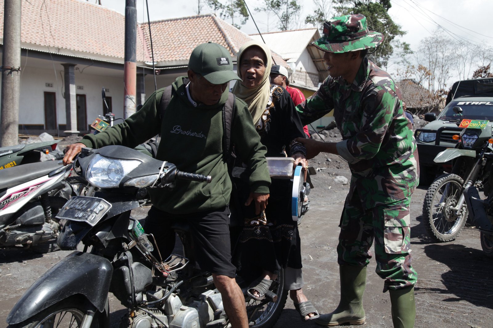 Dengan sigap dan penuh empati, Kapten Anwar membantu Ibu Wartini naik ke sepeda motor untuk kembali menuju lokasi pengungsian setelah memastikan kondisi rumahnya tidak lagi aman untuk ditempati. Tindakan ini bukan hanya menunjukkan kehadiran negara melalui TNI, tetapi juga mempertegas komitmen prajurit di lapangan yang tak hanya fokus pada operasi teknis, tetapi juga pada sisi kemanusiaan.
