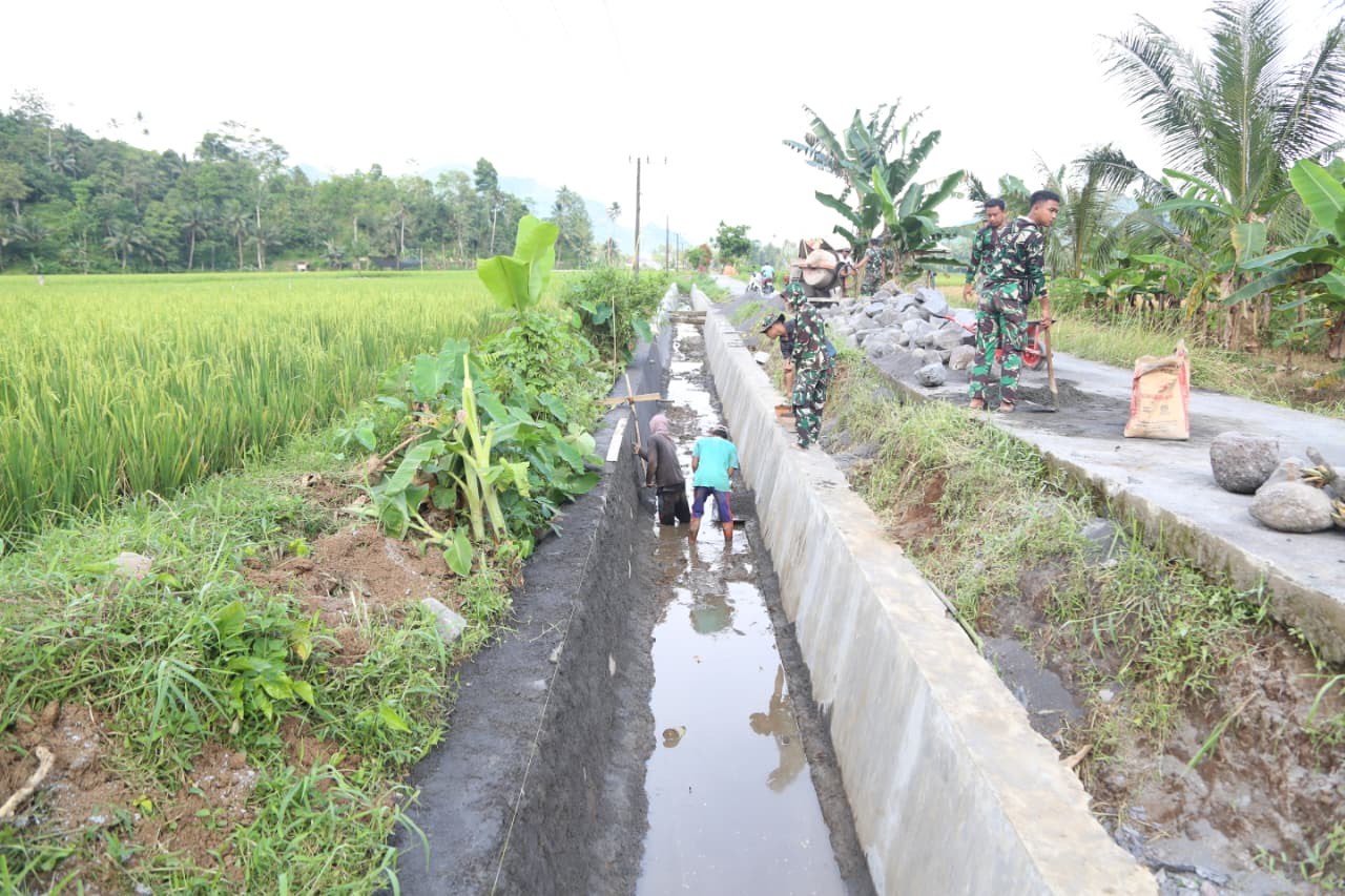 “Pengecoran drainase ini kami rancang agar tahan lama dan bisa menampung debit air yang cukup besar. Harapannya, aliran air ke sawah warga jadi lancar dan tidak menyebabkan genangan saat musim hujan,” jelas Serma Gali di lokasi kegiatan.