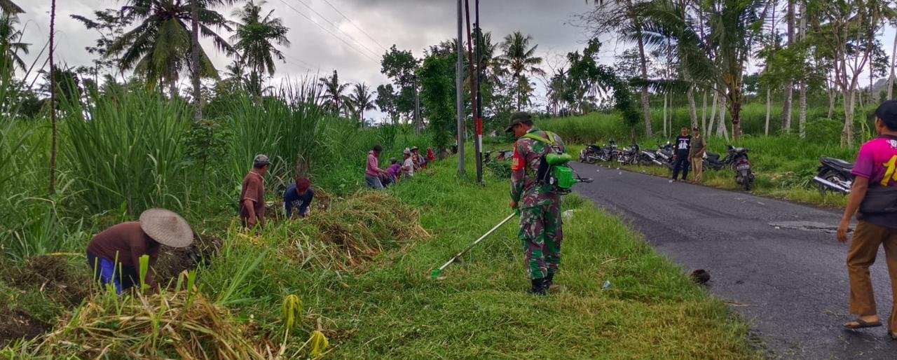 Pererat Gotong Royong, Babinsa Bago Dampingi Warga Bersihkan Sekolah dan Jalan