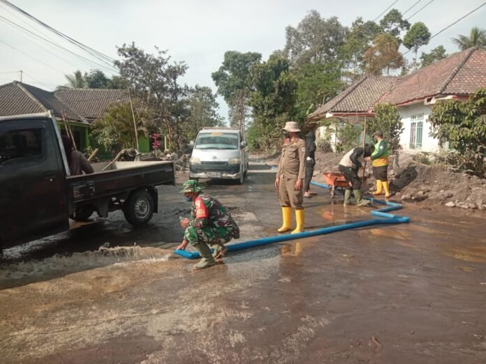 Lumajang — Upaya percepatan penanganan pascaerupsi Gunung Semeru terus dilakukan oleh personel gabungan dari Kodim 0821/Lumajang, Yonif 527/BY, BPBD, serta relawan. Pada Selasa (2/12/2025), tim gabungan tersebut dikerahkan untuk membantu warga membersihkan akses jalan yang tertimbun material vulkanik di wilayah terdampak.