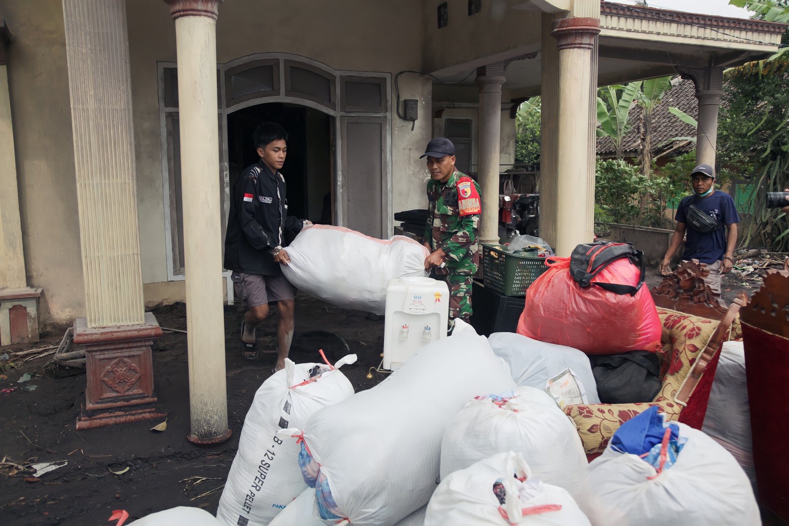 Dengan perlengkapan seadanya yang dilengkapi kendaraan taktis dan mobil patroli, para personel TNI bekerja cepat mengevakuasi berbagai barang warga, mulai dari kursi, lemari, perlengkapan rumah tangga, hingga perabotan lain yang masih bisa diselamatkan dari rumah-rumah yang tertutup material abu dan pasir vulkanik.