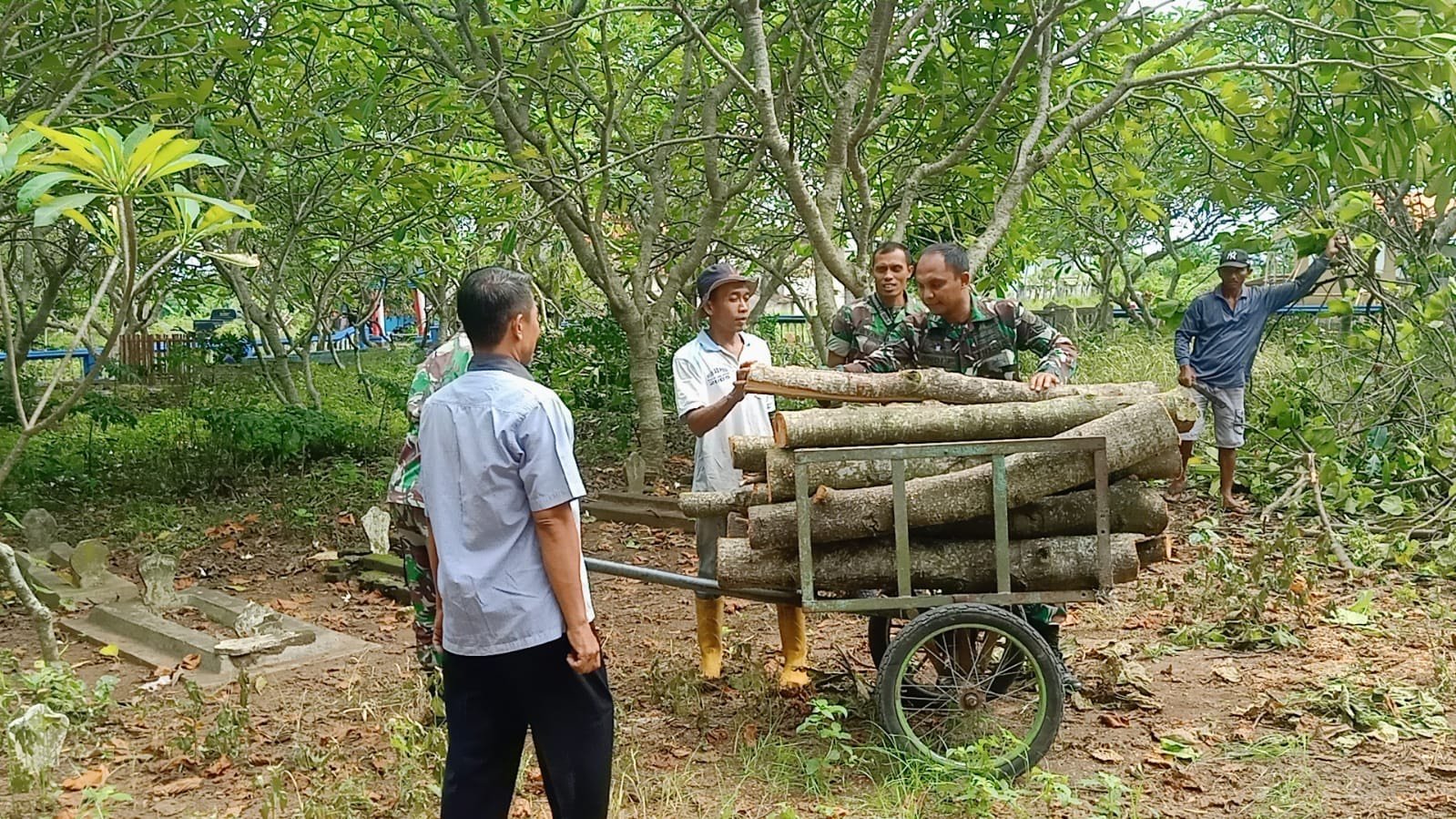 Kegiatan tersebut difokuskan pada pembersihan rumput liar, semak belukar, serta sampah di area pemakaman. Dengan peralatan sederhana, Babinsa dan warga bahu-membahu menciptakan lingkungan makam yang bersih, rapi, dan layak sebagai tempat peristirahatan terakhir para leluhur sekaligus sarana ziarah bagi masyarakat.