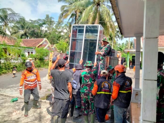 LUMAJANG – Pasca-terjangan banjir lahar dingin Gunung Semeru yang melanda wilayah Candipuro, upaya penyelamatan tidak hanya difokuskan pada jiwa, tetapi juga harta benda warga. Bati Tuud Koramil 0821/09 Candipuro, Peltu Baidowi, memimpin langsung proses evakuasi dan pengamanan barang-barang rumah tangga milik Bapak Satuman di Dusun Sumberlangsep, Desa Jugosari, Kecamatan Candipuro. Senin(8/12/2025)
