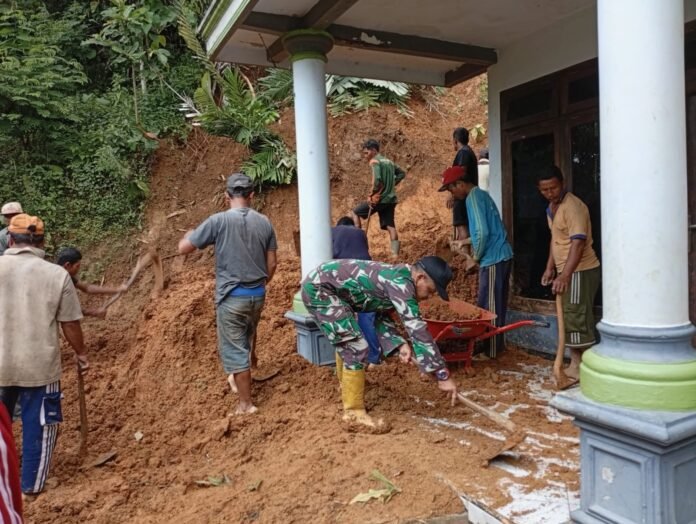 “Kami langsung berkoordinasi dengan perangkat desa dan warga sekitar untuk melakukan penanganan cepat. Fokus kami adalah memastikan tidak ada korban serta akses jalan segera pulih agar aktivitas warga tidak terganggu,” ujar Serka Agus di sela kegiatan.