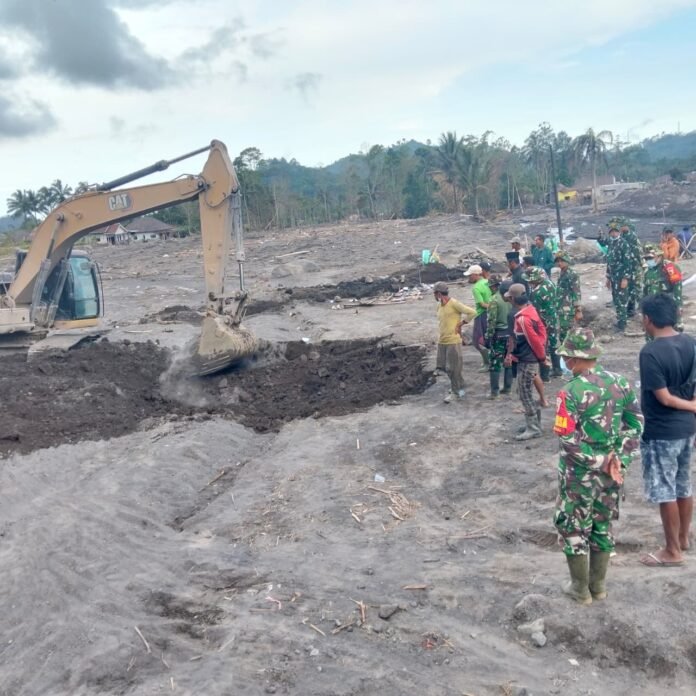 Ia menambahkan bahwa kondisi di lapangan cukup menantang karena sebagian besar area masih tertutup endapan vulkanik. Namun demikian, semangat solidaritas dari tim gabungan tetap menjadi pendorong utama dalam menjalankan tugas kemanusiaan tersebut.