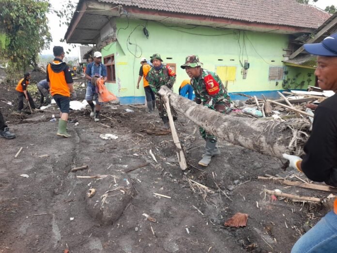 TNI Tingkatkan Aksi Kemanusiaan: Satgas Penanggulangan Bencana Kodim 0821 Intensifkan Pembersihan Rumah Warga Terdampak Erupsi Semeru