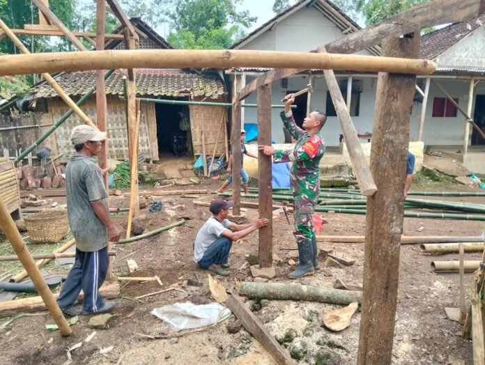 Wujud Kedekatan TNI-Rakyat, Babinsa Gucialit Gotong Royong Bangun Kandang Sapi Milik Warga